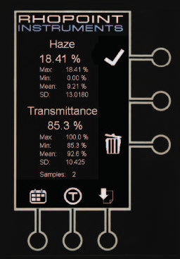 測試結(jié)束時(shí),在屏幕上顯示霧度和透射率的百分比。