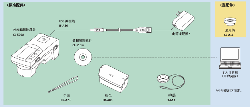 CL-500A符合DIN 5032第7部分B級標準和JIS C 1609-1:2006 AA普通級標準, 是符合DIN和JIS兩種標準的便攜型分光輻射照度計。