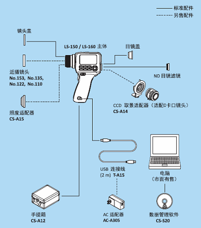 標準配件 | 鏡頭蓋、ND目鏡濾鏡、目鏡蓋、手提箱、腕帶、USB連接線、數(shù)據(jù)管理軟件CS-S20 | |